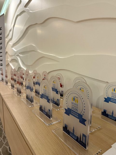 Die Preisübergabe 2026 fand im Januar im Hotel The Westin in der Elbphilharmonie statt. Wir durften wieder einige Vertreter der ausgezeichneten Firmen begrüßen, um Ihnen die Pokale in einem feierlichen Rahmen zu überreichen.